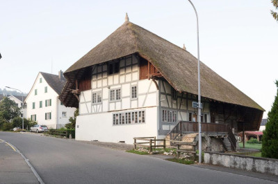 Restoration of thatched roof (former) farmhouse in Hüttikon - now the village museum. Photos of before and after.