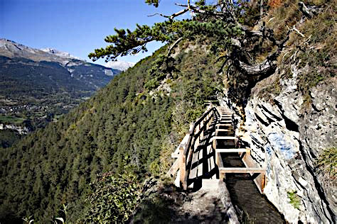 The true marvels of bisse engineering were the "hanging channels", designed to guide water from far-off glaciers around gorges and overhangs in the region's wildest corners.