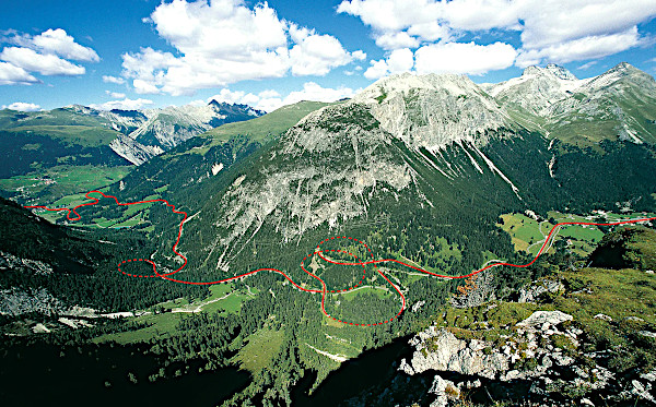 After passing through the Albula Tunnel at 1'815 m (5'955 ft) the distance as the crow flies from Preda to Bergün is just 6 km (3.73 miles), but the train travels twice that distance because in order to descend the 418-m (1'371 ft) difference in altitude, it has to travel through 5 spiral tunnels and looping viaducts.