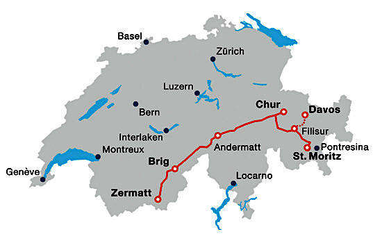 - Today is a real scenic railway highlight - 8 hours on the famous Glacier Express travelling through the roof of the Swiss Alps from St Moritz all the way through to Zermatt and the Matterhorn.