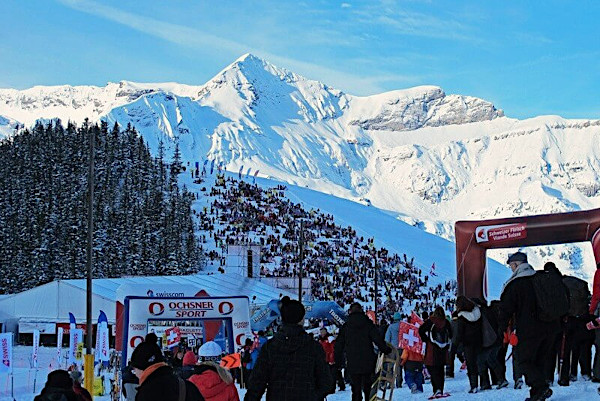 In mid-January, most of Switzerland comes to a halt to watch the Lauberhorn Downhill Ski race broadcast live on TV. The Lauberhorn course above Wengen is the longest World Cup downhill run in the world. It takes about 2½ mins for a top skier to race down from the start at 2'315 m above sea level to the finish at 1'287 m, an altitude difference of 1'028 metres over the 4,5 km long course.