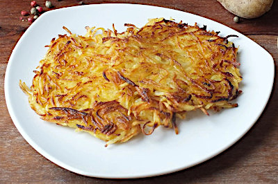 Rösti is a classic, iconic dish that consists of a base of grated potatoes fried like a pancake. It can be served plain or combined with any topping you like - cheese, onions, mushrooms, egg ...