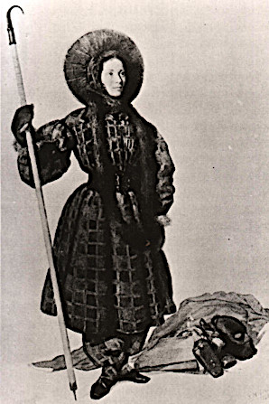 A passionate Alpinist - wealthy 44 yr old French aristocrat who could afford to hire 6 porters, 6 guides, and a kit herself with a 14-pound outfit including multiple layers, a petticoat, knickerbockers and a feather boa.