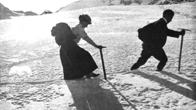 The 19th Century Golden Age of Alpinism (1854-1865) saw many First Ascents of peaks in the Alps, but it was dominated by male alpinists (mainly British) and their Swiss and French guides.