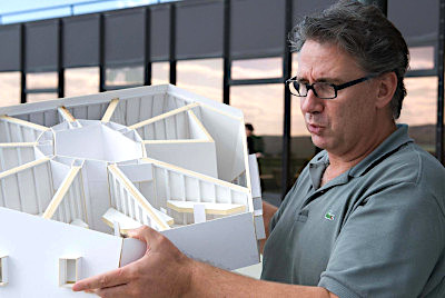 ETH Architecture Prof Andrea Deplazes led a multi-disciplinary team of professors and students to design a building that is considered Switzerland’s most complex wooden structure. The 5-story polygonal building was built on stainless steel foundations; it has a spiral interior and staircase of wood. It was constructed in modules that were helicoptered to the site to be fitted together in situ.