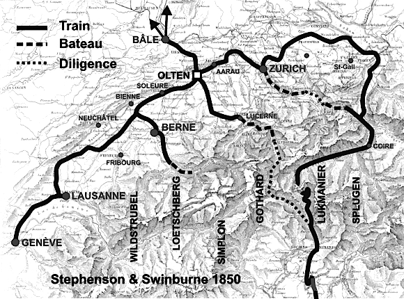 Leading British railway engineering expert, Robert Stephenson (son of George) and his colleague Henry Swinburne, were commissioned to draw up plans for a national railway network for the Swiss Confederation.