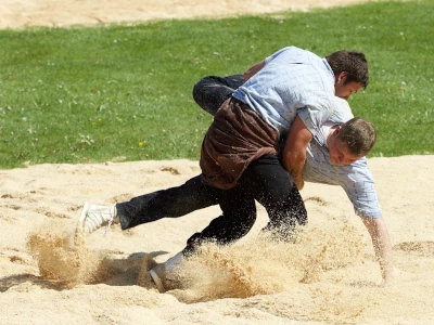 “Schwingen” became an integral part of festive culture from early 17thC. At Alpine festivals, people would wrestle for a piece of trouser-cloth, a sheep or other natural objects - the fame of victory counted for far more than the actual prize - still the case today.