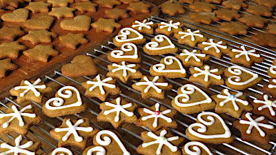 Cinnamon-spiced cookies, often decorated with white icing. They date back to 16th C when cinnamon was a precious imported spice.