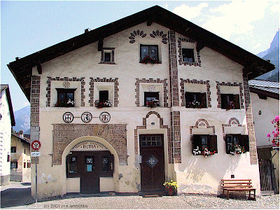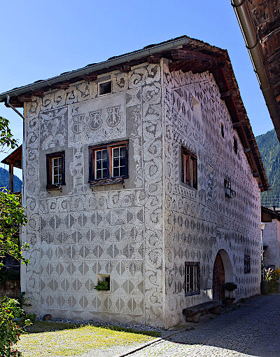 In the Engadine Valley (St Moritz area), the most characteristic feature of the traditional buildings is the use of the s'graffito technique as outside decoration.
