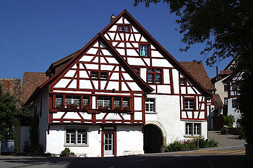 - In German-speaking area, wooden beam building styles dominate.