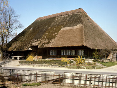 In rainy areas thatched roofs were common until 19th century when compulsory building insurance was introduced in 1813 which led to disappearance of thatched roofs from the rural landscape.