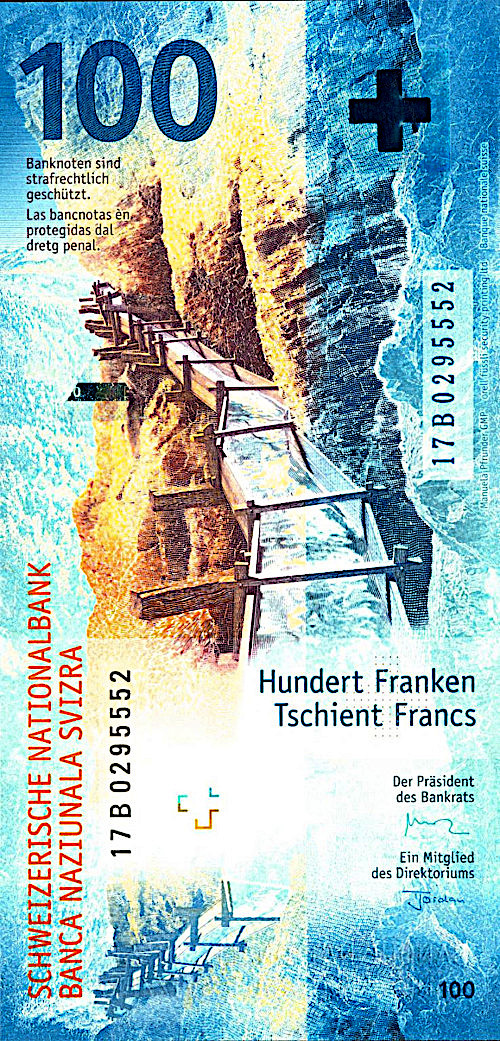 Known as the "King of Bisses", built in 1442 and clinging to a 1,800 m rocky ridge, the Bisse d'Ayent is honoured on the nation's 100-franc note