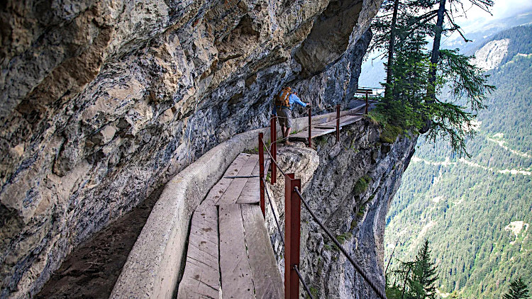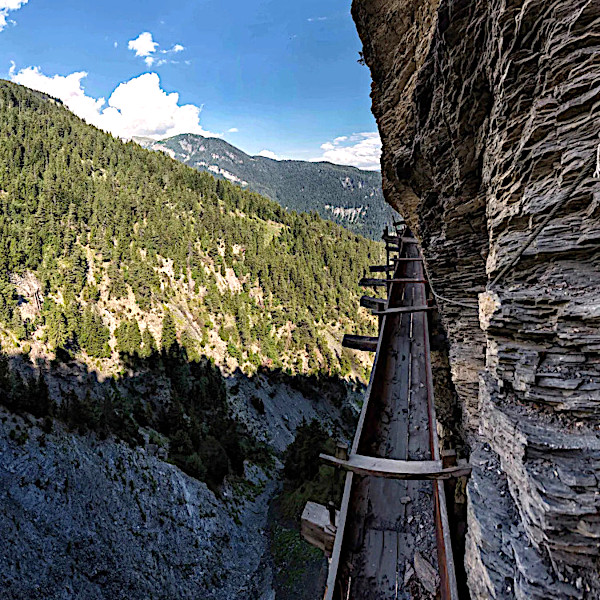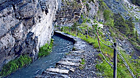 Measuring between ½ m to 2m in breadth, the most primitive of Valais bisses were hewn out of rock; others were hollowed from tree trunks; many were provided with avalanche and rock fall protection.