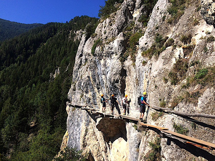 Constructing a bisse was an extensive and often dangerous undertaking. Using nothing more than muscle power and human ingenuity, pick and shovel, and timber and ropes, irrigation channels were created along the rock faces, many suspended several hundred metres above.