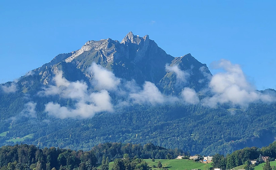 Mount Pilatus is the name of the mountain massif overlooking Lucerne; its highest point, the Tomlishorn is 2'128 m (6'983 ft) above sea level. It straddles 3 cantons - Lucerne, Obwalden and Nidwalden. For geologists, Mount Pilatus is the northernmost branch of the Alps.