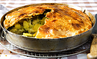 A delicious vegetable pie filled with potatoes, onion, leeks, pears (or apples) and cheese.