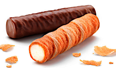Wafer-like biscuits rolled into a tube shape and usually filled with a chocolate or creme mixture.