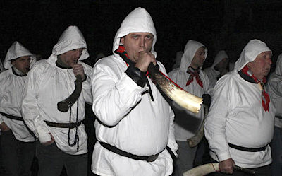 Today only people who have a connection to the town of Küssnacht may take part in the procession. White hooded smocks are worn as the hour-long procession is in darkness lit only by moonlight and candle-light.