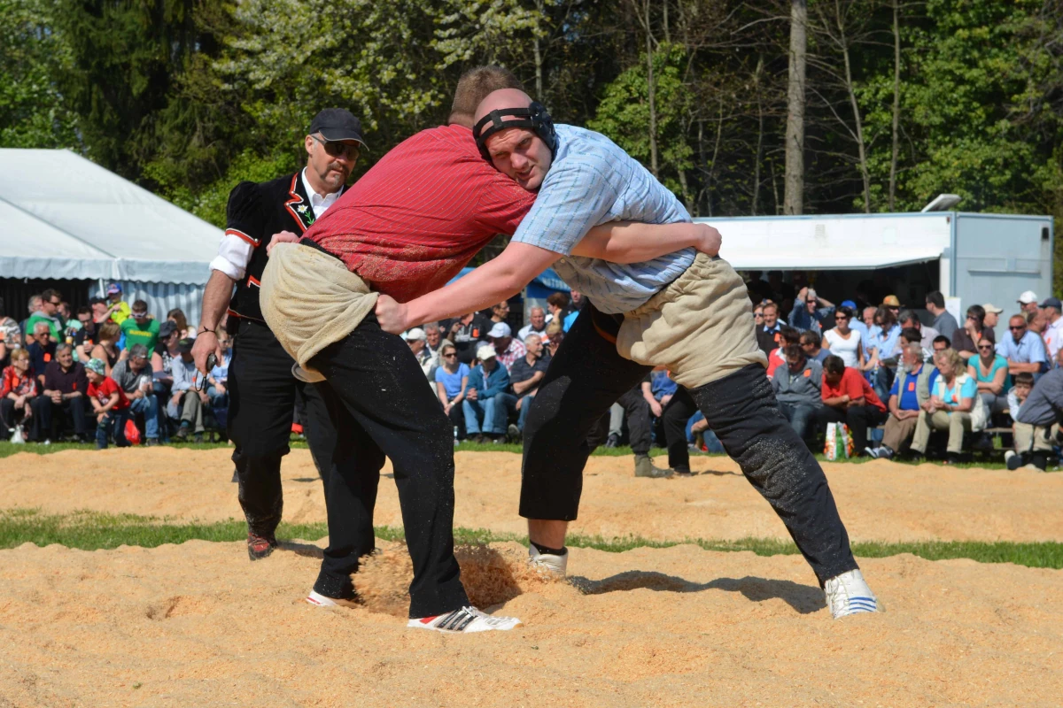 “Schwingen” became an integral part of festive culture from early 17thC. At Alpine festivals, people would wrestle for a piece of trouser-cloth, a sheep or other natural objects - the fame of victory counted for far more than the actual prize - still the case today.
