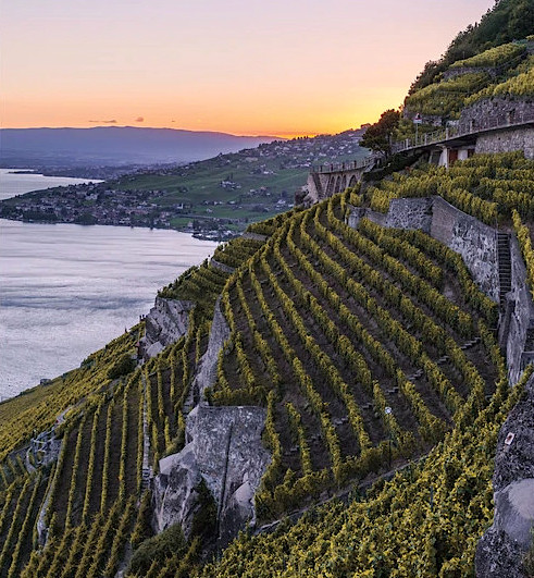 - Steep terraced vineyards of the Lavaux region on Lake Geneva were begun in 12th century by monks from Dézaley, a branch of the Cistercian monastery of Citeaux. These Lavaux vineyards are now a UNESCO World Heritage site.