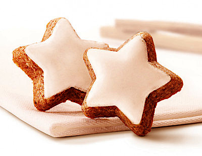 Cinnamon-spiced cookies, often decorated with white icing. They date back to 16th C when cinnamon was a precious imported spice.